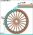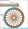 Pitchback water wheel, often used to increase the power generated by a breastshot wheel[58]