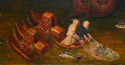 In 537 AD, ship mills were ingeniously used by the East Roman general Belisarius, when the besieging Goths cut off the water supply for those mills.[25] These floating mills had a wheel that was attached to a boat moored in a fast flowing river.
