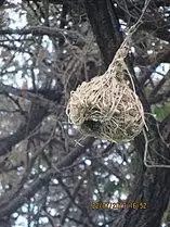 Many weaver species are gregarious and breed colonially.[2] The birds build their nests together for protection, often several to a branch. Usually the male birds weave the nests and use them as a form of display to lure prospective females.
