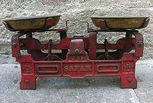 Discussion of the concepts of heaviness (weight) and lightness (levity) date back to the ancient Greek philosophers. These were typically viewed as inherent properties of objects. Plato described weight as the natural tendency of objects to seek their kin. To Aristotle, weight and levity represented the tendency to restore the natural order of the basic elements: air, earth, fire and water. He ascribed absolute weight to earth and absolute levity to fire. Archimedes saw weight as a quality opposed to buoyancy, with the conflict between the two determining if an object sinks or floats. The first operational definition of weight was given by Euclid, who defined weight as: "the heaviness or lightness of one thing, compared to another, as measured by a balance."[2] Operational balances (rather than definitions) had, however, been around much longer.[10]