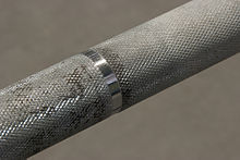 Weight plates are secured to the bar using collars on each sleeve that weigh exactly 2.5 kg each.