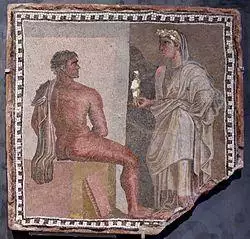 Aeschylus was one of many Greeks who were initiated into the Eleusinian Mysteries, an ancient cult of Demeter based in his home town of Eleusis.[18] Initiates gained secret knowledge through these rites, likely concerning the afterlife. Firm details of specific rites are sparse, as members were sworn under the penalty of death not to reveal anything about the Mysteries to non-initiates. Nevertheless, according to Aristotle, Aeschylus was accused of asebeia for revealing some of the cult's secrets on stage.[19][20]