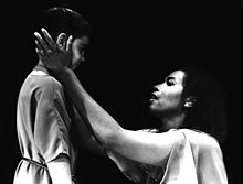 During the Trojan War, after Hector was killed by Achilles and the city taken by the Greeks, the Greek herald Talthybius informed her of the plan to kill Astyanax, her son by Hector, by throwing him from the city walls. This act was carried out by Neoptolemus who then took Andromache as a concubine and Hector's brother, Helenus, as a slave. By Neoptolemus, she was the mother of Molossus, and according to Pausanias,[2] of Pielus and Pergamus. When Neoptolemus died, Andromache married Helenus and became Queen of Epirus. Pausanias also implies that Helenus' son, Cestrinus, was by Andromache. In Epirus Andromache faithfully continued to make offerings at Hector’s cenotaph.[3] Andromache eventually went to live with her youngest son, Pergamus in Pergamum, where she died of old age. Andromache was famous for her fidelity and virtue; her character represents the suffering of Trojan women during war.[3]