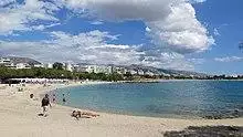 Athens has a hot-summer Mediterranean climate (Köppen climate classification: Csa). The dominant feature of Athens' climate is alternation between prolonged hot and dry summers and mild winters with moderate rainfall.[46] With an average of 451 millimetres (17.8 in) of yearly precipitation, rainfall occurs largely between the months of October and April. July and August are the driest months when thunderstorms occur sparsely. Furthermore, some coastal areas of Athens, known as the Athens Riviera have a hot semi-arid climate (BSh) according to the climate atlas published by the Hellenic National Meteorological Service (H.N.M.S).[47]