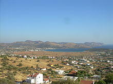 View from Kaisariani Hill looking towards Athens, with Salamis visible in the background | |