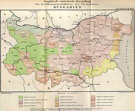 Prior to the early 20th century, there was a small Greek minority in Southeastern Bulgaria, living largely between Varna to the north, Topolovgrad to the west and the Black Sea to the east, with a scattered rural population in the inland regions of the Strandzha and Sakar mountains.[2] The Greek-inhabited places in Strandzha and Sakar were the town of Topolovgrad and 9 villages: Oreshnik, Kapitan Petko Voyvoda, Sinapovo, Chukarovo, Golyam Manastir, Malak Manastir, Sharkovo, Malko Sharkovo, and Mamarchevo.[5] However, a large part of this population, the so-called Kariots,[6] is regarded by some ethnographers (including Konstantin Josef Jireček) as having been only Greek-identifying, but of Bulgarian origin; (see Grecomans).[7] Greek communities also existed in Plovdiv, Sofia, Asenovgrad, Haskovo and Rousse, among others.[2] In 1900, the Greeks in Bulgaria numbered 33,650.[8]