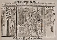 Petrarch is a key figure in the imitation of Horace in accentual meters. His verse letters in Latin were modelled on the Epistles and he wrote a letter to Horace in the form of an ode. However he also borrowed from Horace when composing his Italian sonnets. One modern scholar has speculated that authors who imitated Horace in accentual rhythms (including stressed Latin and vernacular languages) may have considered their work a natural sequel to Horace's metrical variety.[104] In France, Horace and Pindar were the poetic models for a group of vernacular authors called the Pléiade, including for example Pierre de Ronsard and Joachim du Bellay. Montaigne made constant and inventive use of Horatian quotes.[105] The vernacular languages were dominant in Spain and Portugal in the sixteenth century, where Horace's influence is notable in the works of such authors as Garcilaso de la Vega, Juan Boscán, Sá de Miranda, Antonio Ferreira and Fray Luis de León, the last writing odes on the Horatian theme beatus ille (happy the man).[106] The sixteenth century in western Europe was also an age of translations (except in Germany, where Horace wasn't translated into the vernacular until well into the seventeenth century). The first English translator was Thomas Drant, who placed translations of Jeremiah and Horace side by side in Medicinable Morall, 1566. That was also the year that the Scot George Buchanan paraphrased the Psalms in a Horatian setting. Ben Jonson put Horace on the stage in 1601 in Poetaster, along with other classical Latin authors, giving them all their own verses to speak in translation. Horace's part evinces the independent spirit, moral earnestness and critical insight that many readers look for in his poems.[107]