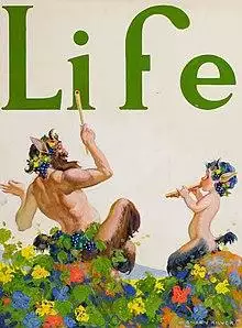 The 1917 Italian silent film Il Fauno, directed by Febo Mari, is about a statue of a faun who comes to life and falls in love with a female model.[121] Fauns appear in the animated dramatization of Ludwig van Beethoven's Symphony No. 6 (1808) in the 1940 Disney animated film Fantasia.[120] Their goat-legs are portrayed as brightly colored, but their hooves are black.[120] They play the Pan pipes and, like traditional satyrs and fauns, are portrayed as mischievous.[120] One young faun plays hide-and-seek with a unicorn and imitates a statue of a faun atop a pedestal.[120] Though the fauns are not portrayed as overtly sexual, they do assist the Cupids in pairing the centaurs into couples.[120] A drunken Bacchus appears in the same scene.[120]
