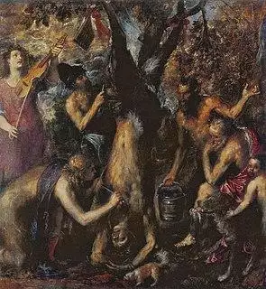 Satyrs occupied a paradoxical, liminal space in Renaissance art, not only because they were part human and part beast, but also because they were both antique and natural.[106] They were of classical origin, but had an iconographical canon of their own very different from the standard representations of gods and heroes.[106] They could be used to embody what Stephen J. Campbell calls a "monstrous double" of the category in which human beings often placed themselves.[106] It is in this aspect that satyrs appear in Jacopo de' Barbari's c. 1495 series of prints depicting satyrs and naked men in combat[106] and in Piero di Cosimo's Stories of Primitive Man, inspired by Lucretius.[106] Satyrs became seen as "pre-human", embodying all the traits of savagery and barbarism associated with animals, but in human-like bodies.[106] Satyrs also became used to question early modern humanism in ways which some scholars have seen as similar to present-day posthumanism,[103] as in Titian's Flaying of Marsyas (c. 1570–1576).[103] The Flaying of Marysas depicts the scene from Ovid's Metamorphoses in which the satyr Marysas is flayed alive.[108] According to Campbell, the people performing the flaying are shown calmly absorbed in their task, while Marsyas himself even displays "an unlikely patience".[108] The painting reflects a broad continuum between the divine and the bestial.[106]
