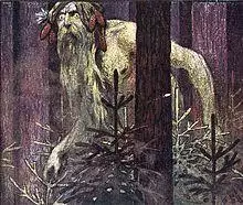 Like satyrs, these similar creatures in other Indo-European mythologies are often also tricksters, mischief-makers, and dancers.[18] The lešiy was believed to trick travelers into losing their way.[16] The Armenian Pay(n) were a group of male spirits said to dance in the woods.[19] In Germanic mythology, elves were also said to dance in woodland clearings and leave behind fairy rings.[19] They were also thought to play pranks, steal horses, tie knots in people's hair, and steal children and replace them with changelings.[19] West notes that satyrs, elves, and other nature spirits of this variety are a "motley crew" and that it is difficult to reconstruct a prototype behind them.[20] Nonetheless, he concludes that "we can recognize recurrent traits" and that they can probably be traced back to the Proto-Indo-Europeans in some form.[20]
