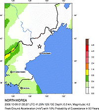 - ^ (English) "Magnitude 4.3—North Korea (2006 October 09 01:35:28 UTC)". United States Geological Survey (USGS). October 9, 2010. Retrieved December 11, 2010.
