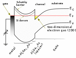 Other methods for engineering 2DEGs are high-electron-mobility-transistors (HEMTs) and rectangular quantum wells. HEMTs are field-effect transistors that utilize the heterojunction between two semiconducting materials to confine electrons to a triangular quantum well. Electrons confined to the heterojunction of HEMTs exhibit higher mobilities than those in MOSFETs, since the former device utilizes an intentionally undoped channel thereby mitigating the deleterious effect of ionized impurity scattering. Two closely spaced heterojunction interfaces may be used to confine electrons to a rectangular quantum well. Careful choice of the materials and alloy compositions allow control of the carrier densities within the 2DEG.