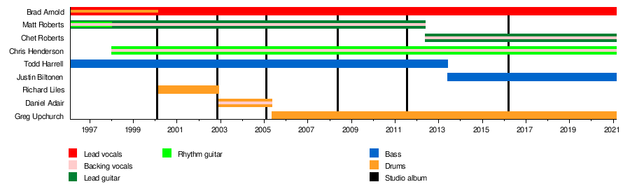 Former guitarist Matt Roberts died on August 20, 2016 at the age of 38 from a prescription drug overdose.[30]