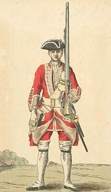 On 1 July 1751 a royal warrant was issued declaring that in future regiments were no longer to be known by their colonel's name, but by the "Number or Rank of the Regiment". Accordingly, Lieutenant-General Henry Holmes's Regiment was renamed as the 31st Regiment of Foot.[13] The regiment returned to the United Kingdom in 1752.[14] A second battalion was formed in 1756, and was reconstituted as the 70th Regiment of Foot in 1758.[8] The regiment embarked for Pensacola in Florida in 1765 but suffered heavy losses there due to fever.[15] The regiment moved to Saint Vincent in 1772 and lost its commanding officer, Lieutenant Colonel Ralph Walsh, in an ambush by local tribesmen in January 1773.[16] The regiment returned to England in 1774.[17]