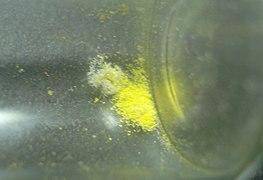 In 1945, B. B. Cunningham obtained the first bulk chemical compound of a transplutonium element, namely americium hydroxide.[45] Over the few years, milligram quantities of americium and microgram amounts of curium were accumulated that allowed production of isotopes of berkelium (Thomson, 1949)[46][47] and californium (Thomson, 1950).[48][49][50] Sizeable amounts of these elements were produced in 1958 (Burris B. Cunningham and Stanley G. Thomson),[51] and the first californium compound (0.3 µg of CfOCl) was obtained in 1960 by B. B. Cunningham and J. C. Wallmann.[52]