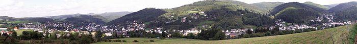 Adenau (German: [ˈaːdənaʊ] ) is a town in the High Eifel in Germany. It is known as the Johanniterstadt because the Order of Saint John was based there in the Middle Ages. The town's coat of arms combines the black cross of the Electorate of Cologne with the lion of the lords of Nürburg. The northern loop of the Nürburgring lies just outside the town.