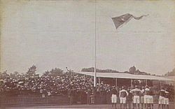 In 1902, the Grand Final was first played at the Melbourne Cricket Ground, when Collingwood 9.6 (60) defeated Essendon 3.9 (27) before a then-record Australian football crowd of 35,000.[7] By 1908, every finals match was played at the Melbourne Cricket Ground, and new attendance records were set in 1908 (50,261), 1912 (54,463) and 1913 (59,479). During this period, Carlton became the first club to win three consecutive premierships, winning 'finals' in all three years.