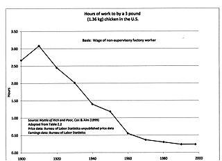 Between 1950 and 2000, during the so-called "second agricultural revolution of modern times", U.S. agricultural productivity rose fast, especially due to the development of new technologies. For example, the average amount of milk produced per cow increased from 5,314 pounds to 18,201 pounds per year (+242%), the average yield of corn rose from 39 bushels to 153 bushels per acre (+292%), and each farmer in 2000 produced on average 12 times as much farm output per hour worked as a farmer did in 1950.[18]