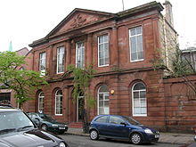 Education posed a major problem with severe overcrowding in the few schools available, therefore three new school boards were established. In the early 1830s there were about 800 pupils while the town had about 7000 residents.[30] Fees were routinely charged within the schools with the belief they should be self-supporting until a parliamentary act of 1889 relieved some of the infant classes in schools of this burden. Airdrie Academy was built in 1849 and by 1919 all school boards were dissolved and Lanarkshire Education Authority took over responsibility for education throughout Lanarkshire.[31]