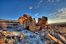 Tourist destinations in the province include: Banff, Canmore, Drumheller, Jasper, Sylvan Lake and Lake Louise. Alberta is home to six UNESCO World Heritage Sites: The Canadian Rocky Mountain Parks, Dinosaur Provincial Park, the Head-Smashed-In Buffalo Jump, Waterton–Glacier International Peace Park, Wood Buffalo National Park, and Writing-on-Stone / Áísínai'pi.[18] The province has a predominantly humid continental climate, with stark contrasts over a year; but seasonal temperature average swings are smaller than in areas further east, due to winters being warmed by occasional chinook winds bringing sudden warming.[19]