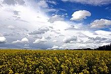 In central and northern Alberta the arrival of spring is marked by the early flowering of the prairie crocus anemone; this member of the buttercup family has been recorded flowering as early as March, though April is the usual month for the general population.[38] Other prairie flora known to flower early are the golden bean and wild rose.[39] Members of the sunflower family blossom on the prairie in the summer months between July and September.[40] The southern and east central parts of Alberta are covered by short prairie grass,[41] which dries up as summer lengthens, to be replaced by hardy perennials such as the prairie coneflower, fleabane, and sage. Both yellow and white sweet clover can be found throughout the southern and central areas of the province.