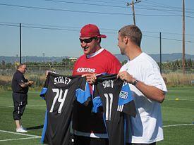 Smith met Joe Montana for the first time on November 5, 2006, during a game against the Vikings. The 49ers wore the throwback jerseys of the 1989 team which Joe Montana and teammates wore. The 49ers went on to win 9–3, upsetting the Minnesota Vikings.[25]