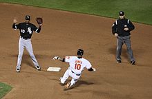 Ramírez hit his first career grand slam on July 22, 2008.[6] On September 19, Ramírez hit his third grand slam of the season off of pitcher Brian Bannister of the Kansas City Royals, tying an American League rookie record set by Shane Spencer of the New York Yankees in 1998. It was the White Sox's eleventh grand slam of the season, equaling the previous club record from 2006.[7] On September 29, Ramírez hit his fourth grand slam of the season, setting a major-league single-season record for a rookie,[8] off of Detroit Tigers pitcher Gary Glover in an 8–2 Sox victory to qualify the Sox for a one-game tiebreaker against the Minnesota Twins for the AL Central title. This also broke the team record for most grand slams in a single season.[9]