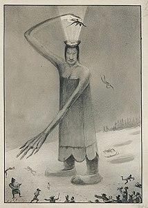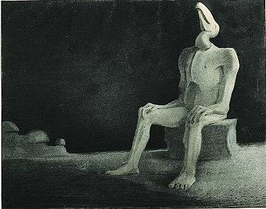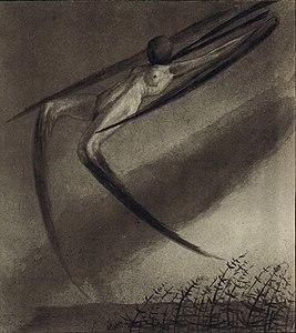 Kubin's only written work was Die andere Seite (transl. The Other Side) (1908), a fantastic novel set in an oppressive imaginary land.[6][7][8][9] The novel has an atmosphere of claustrophobic absurdity similar to the writings of Franz Kafka, who admired the book.[4][10] The illustrations for the book were originally intended for The Golem by Gustav Meyrink, but as that book was delayed, Kubin instead worked his illustrations into his own novel.[3]