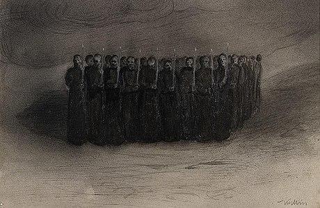Kubin is considered an important representative of Symbolism and Expressionism and is noted for dark, spectral, symbolic fantasies, often assembled into thematic series of drawings. Like Oskar Kokoschka and Albert Paris Gütersloh, Kubin had both artistic and literary talent. He illustrated the works of Edgar Allan Poe, E. T. A. Hoffmann, and Fyodor Dostoevsky, among others. Kubin also illustrated the German fantasy magazine Der Orchideengarten.[3][4]