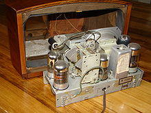 The term All American Five (abbreviated AA5) is a colloquial name for mass-produced, superheterodyne radio receivers that used five vacuum tubes in their design. These radio sets were designed to receive amplitude modulation (AM) broadcasts in the medium wave band, and were manufactured in the United States from the mid-1930s until the early 1960s.[1][2] By eliminating a power transformer, cost of the units was kept low; the same principle was later applied to television receivers. Variations in the design for lower cost, shortwave bands, better performance or special power supplies existed, although many sets used an identical set of vacuum tubes.