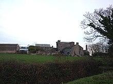 A mile to the south, Wraysholme Tower is a 15th-century pele tower, used as a barn and cow-house, adjoining a 19th-century farmhouse.[4] The tower was built by the Harrington family of Aldingham. A Michael Harrington acquired a grant of free warren in Allingham in 1315. The tower is 40 feet (12 m) by 28 feet (8.5 m). It has axes north and south and is built of local limestone rubble, with angle quoins. The walls are 4 feet (1.2 m) thick at their base. There is a projecting garderobe, about 7 feet (2.1 m) square, at the south-west corner, where there is a spiral staircase. There was originally an entrance at the north-west corner.[5] The building is roofed with slate.[6][7]