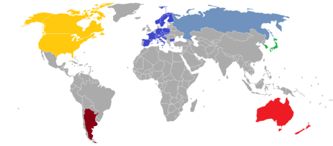 | Location(s) | Europe Canada United States Japan (rarely) Russia (rarely) Australia (rarely) Argentina (rarely) South Korea (rarely) New Zealand (rarely) |