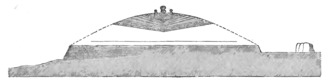 Alyattes' tomb still exists on the plateau between Lake Gygaea and the river Hermus to the north of the Lydian capital Sardis — a large mound of earth with a substructure of huge stones. (38.5723401, 28.0451151) It was excavated by Spiegelthal in 1854, who found that it covered a large vault of finely cut marble blocks approached by a flat-roofed passage of the same stone from the south. The sarcophagus and its contents had been removed by early plunderers of the tomb. All that was left were some broken alabaster vases, pottery and charcoal. On the summit of the mound were large phalli of stone.[12]