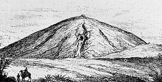 Some authors have suggested that Buddhist stupas were derived from a wider cultural tradition from the Mediterranean to the Indus valley, and can be related to the funeral conical mounds on circular bases that can be found in Lydia or in Phoenicia from the 8th century BCE, such as the tomb of Alyattes.[22][23][24]