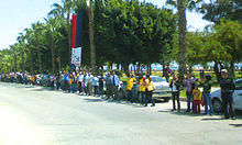 In May 1986, following the Chernobyl disaster, clashes between anti-nuclear protesters and West German police were common. More than 400 people were injured in mid-May at a nuclear-waste reprocessing plant being built near Wackersdorf.[124] Also in May 1986, an estimated 150,000 to 200,000 people marched in Rome to protest against the Italian nuclear program, and 50,000 marched in Milan.[125] Hundreds of people walked from Los Angeles to Washington, D.C., in 1986 in what is referred to as the Great Peace March for Global Nuclear Disarmament. The march took nine months to traverse 3,700 miles (6,000 km), advancing approximately fifteen miles per day.[126]