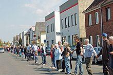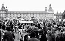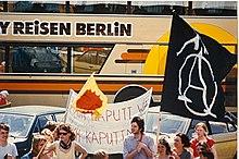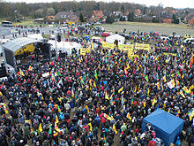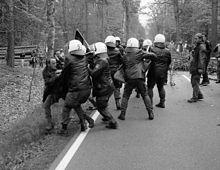 In 1981, Germany's largest anti-nuclear power demonstration protested against the construction of the Brokdorf Nuclear Power Plant west of Hamburg. Some 100,000 people came face to face with 10,000 police officers.[113][120][121]