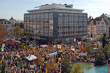 In the Basque Country (Spain and France), a strong anti-nuclear movement emerged in 1973, which ultimately led to the abandonment of most of the planned nuclear power projects.[116] On 14 July 1977, in Bilbao, between 150,000 and 200,000 people protested against the Lemoniz Nuclear Power Plant. This has been called the "biggest ever anti-nuclear demonstration".[117]
