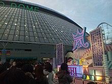 The group's success in 2007 sparked renewed public interest. In February, Arashi released their first single of the year, "Step and Go", which debuted at the top of the Oricon weekly chart for having sold 324,223 copies, making it as the group's first single to exceed 300,000 copies sold in the first week since "Sunrise Nippon/Horizon" in 2000.[16][54] The same month, it was announced that the group would be doing a concert tour of the five major domes in Tokyo, Nagoya, Osaka, Fukuoka, and Sapporo.[55] The tour, titled Arashi Marks 2008 Dream-A-Live, consisted of ten performances, from May 16 in Osaka to July 6 in Sapporo.[55][56] The only other Johnny's artists who have done a five dome tour were SMAP and KinKi Kids.[55] The tour also coincided with their eighth studio album, Dream "A" Live, which was reported to be a hit with male buyers by Oricon despite the fact that most releases by Johnny's artists are geared towards female teens and young adults.[57] In the midst of the tour, Arashi released their twenty-second single "One Love", the theme song for the last production of the Hana Yori Dango trilogy. Like "Step and Go", the single sold over 300,000 copies in its first week and charted at number-one of the weekly singles chart.[58]