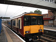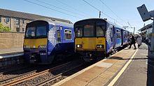 At its opening, the rolling stock on the Argyle Line was Class 314 electric multiple units, which were then new.[38] These were accompanied by a number of the older Class 303[39] "Blue Train" sets from the North Clyde route. In the late 1980s and early 1990s, Class 311 trains also operated on this route. After the 303s were retired in 2002, the route was operated by a mixture of new Class 334 Alstom "Juniper" units,[40] alongside a small number of 1980s vintage Class 318[41] trains cascaded from the Ayrshire routes, with the original Class 314 sets transferred to the Cathcart Circle.