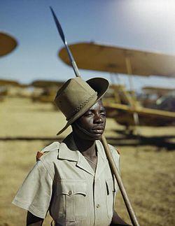An askari (from Somali, Swahili and Arabic عسكري ʿaskarī, meaning soldier, or military) was a local soldier serving in the armies of the European colonial powers in Africa, particularly in the African Great Lakes, Northeast Africa and Central Africa. The word is used in this sense in English, as well as in German, Italian, Urdu and Portuguese. In French, the word is used only in reference to native troops outside the French colonial empire. The designation is still in occasional use today to informally describe police, gendarmerie and security guards.[1]