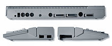 - a portable (but definitely not laptop) version of the ST with the complete ST keyboard, an LCD screen simulating 640x400 hi-res, and a mini-trakball intended mostly for travellers and musicians because of the backlit screen and its built-in midi ports. Originally designed to operate on 12 standard C cell flashlight batteries for portability, when Atari finally realized how quickly the machine would use up a set of batteries (especially when rechargeable batteries of the time supplied insufficient power compared to the intended alkalines), they simply glued the lid of the battery compartment shut.