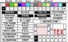 Graphics programs such as NEOchrome, Degas & Degas Elite, Canvas, Deluxe Paint, and Cyber Paint (which author Jim Kent would later evolve into Autodesk Animator)[49] featured advanced features such as 3D design and animation. One paint program, Spectrum 512, uses the ST's rapid palette switching ability to expand the maximum number of colors to be displayed on-screen at once to 512[49] (up to 46 in each scan line.