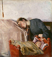 The idea of co-sleeping was not new in modern Western societies; as early as in 1976, Tine Thevenin had campaigned for the "family bed".[57] Sears doesn't see a problem when a three-year-old still shares their mother's bed every night.[58] He doesn't even object if a child is in the habit of spending the whole night with her mother's nipple in her mouth, except when the mother really feels uncomfortable.[59] Sears advises working mothers to co-sleep on all accounts in order to compensate the child for her daytime absence.[60]