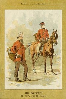 Before colonial control of mail started in 1809, mail was usually passed on by ad hoc arrangements made between transporters, storekeepers and settlers. These arrangements were flexible, and inherently unstable. It was common for early settlers to ride many miles out of their way to deliver neighbours' mail that had been collected from informal distribution points.[5]
