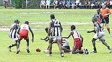 Australian rules football is known by several nicknames, including Aussie rules, football and footy.[9] In some regions, it is marketed as AFL after the Australian Football League.[10]