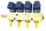 Most vapour phase injection systems mount the solenoids in a manifold block or injector rail, then run hoses to the nozzles, which are screwed into holes drilled and tapped into the runners of the intake manifold. There is usually one nozzle for each cylinder. Some vapour injection systems resemble petrol injection, having separate injectors that fit into the manifold or head in the same manner as petrol injectors, and are fed fuel through a fuel rail.