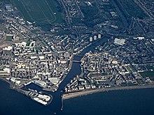 The name Ayr can be traced back to a pre-Celtic word meaning "watercourse" or "strong river".[5] This name was used before the establishment of the Julian calendar in reference to the River Ayr. The town was formerly known as 'Inverair' or 'Inverayr', meaning "mouth of the river Ayr", yet this was later abbreviated to 'Air', and then to 'Ayr'. Elements of the old name remain present within the Scottish Gaelic name for Ayr – Inbhir Air.[6]