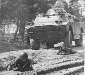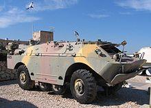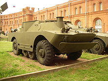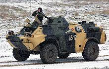 The BRDM-2 (Boyevaya Razvedyvatelnaya Dozornaya Mashina, Боевая Разведывательная Дозорная Машина, literally "Combat Reconnaissance/Patrol Vehicle")[5] is an amphibious armoured patrol car used by Russia and the former Soviet Union. It was also known under the designations BTR-40PB, BTR-40P-2 and GAZ 41-08. This vehicle, like many other Soviet designs, has been exported extensively and is in use in at least 38 countries. It was intended to replace the earlier BRDM-1, compared to which it had improved amphibious capabilities and better armament.