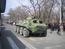 Soviet BTR-60s, BTR-70s and BTR-80s were used for dispersing the demonstrations in Tbilisi in 1989 and stopping the fighting on the border between Uzbek SSR and Kirghiz SSR. They were also used in Nagorno-Karabakh and South Ossetia. In 1990, they were used in Vilnius to suppress the Lithuanian independence movements.[20]