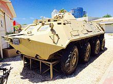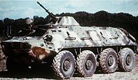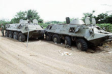 The Soviet Union invested heavily in bolstering the mechanized and armoured capabilities of the People's Armed Forces of Liberation of Angola (FAPLA) during the Angolan Civil War.[26] To that end, it provided FAPLA with just under 500 BTR-60s as part of a comprehensive military assistance programme between 1975 and 1989.[4] FAPLA initially received 74 BTR-60PBs in 1975, and ordered another 175 BTR-60PBs in 1980, which were delivered between 1981 and 1985.[4] In 1987 and 1988, Angolan motorized brigades received another 250 BTR-60PBs and some BTR-60R-145BM command vehicles.[4]